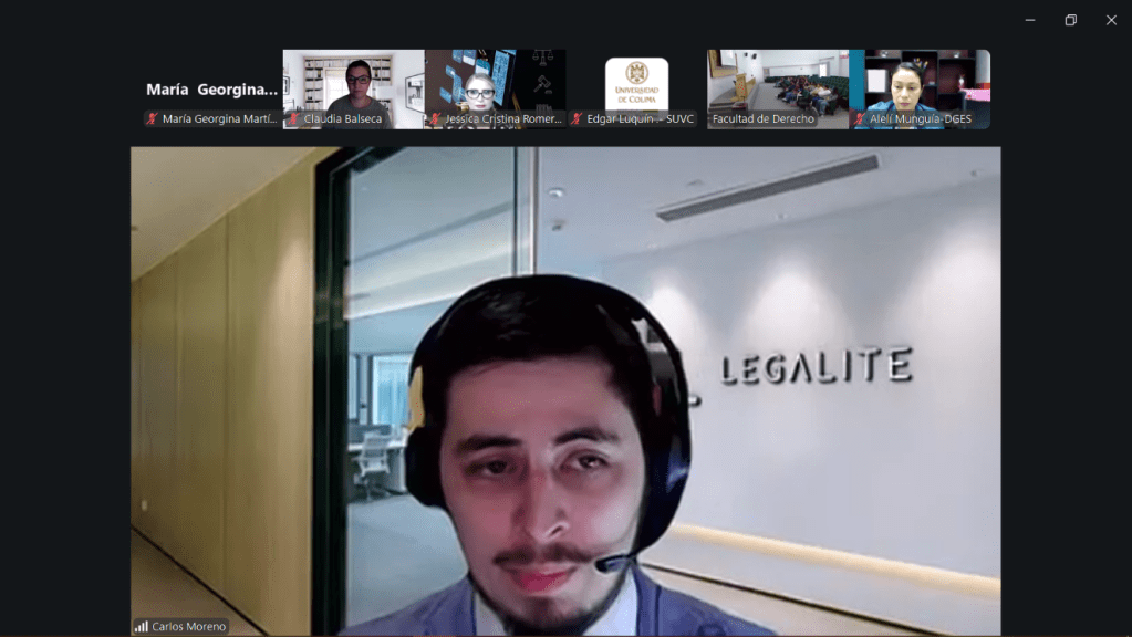 La participación del fundador del despacho LEGALITE, Moreno Morón, se dio en el marco del programa de cooperación académica y de transmisión del conocimiento Red Global MX, Capítulo España, que en esta ocasión reunió a estudiantes de Derecho, Administración pública, Relaciones internacionales, Psicología y Trabajo social de la Universidad de Colima.