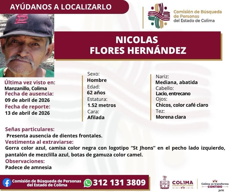 COLIMA7 días agoSe busca: Omar tiene 53 años de edad, desapareció el 10 de abril en Colima
