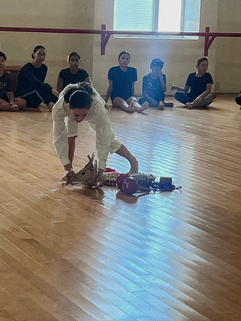 En paralelo, la música construyó un paisaje sonoro en constante diálogo con el movimiento. Gilberto Moreno acompañó las sesiones en vivo, combinando instrumentos tradicionales de la Danza del Venado con elementos contemporáneos como batería y guitarra eléctrica. “Hay una relación muy cercana entre el sonido y el cuerpo. Lo que hicimos fue compartir ese diálogo que Michelle y yo hemos construido, pero adaptándolo para que los niños pudieran entrar en él”, explicó.