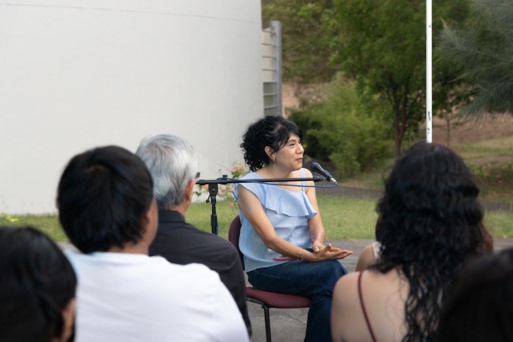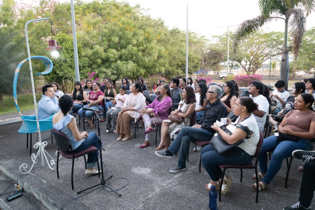 Colima, México, Comunicado (18/04/2026).- Como un espacio pensado para hablar de arte en la voz de sus protagonistas, dio inicio un nuevo ciclo del programa “Rabo de Luna, Cultura en Diálogo”, que coordina la poeta Zeydel Bernal con apoyo de la Dirección General de Difusión Cultural de la Universidad de Colima. Esta semana ofreció un encuentro con la artista plástica y académica Sandra Uribe Alvarado, quien habló en la explanada del Teatro Universitario sobre su trayectoria y experiencias como creadora y docente.