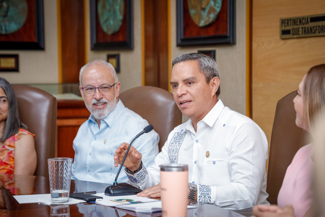 Reunidos en la Sala de Juntas de Rectoría con parte de sus equipos de trabajo, ambos rectores comentaron los retos y las similitudes de ambas casas de estudio, no sólo en cuanto al tamaño de sus respectivas entidades, sino en los logros académicos, científicos y culturales, y en los retos que enfrentan y enfrentarán en los años por venir.