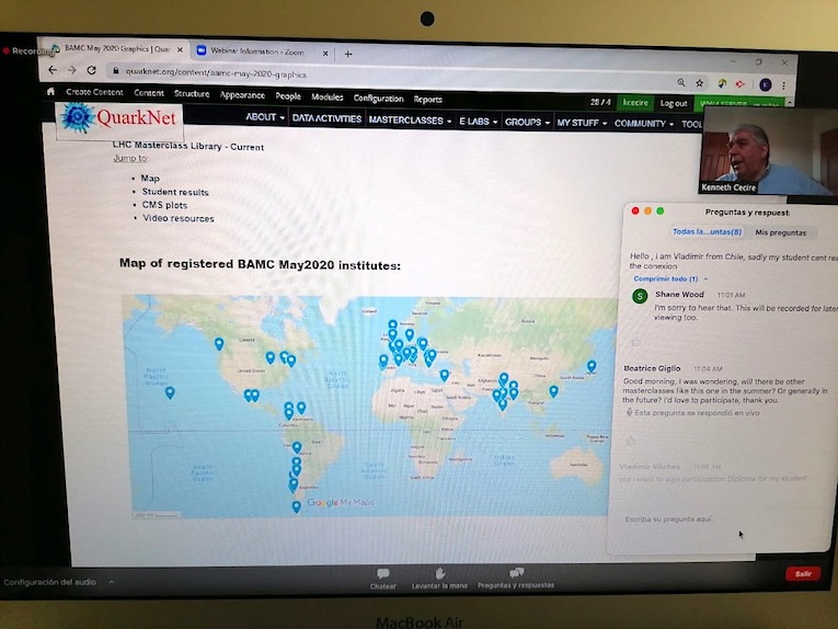 Kenneth Cecire es colaborador de un programa llamado QuarkNet, del Laboratorio Nacional Fermilab (con el que la UdeC tiene firmado un convenio de colaboración desde hace varios años), ubicado en Estados Unidos. Se trata de un programa dedicado a vincular diversas actividades de educación y comunicación de la ciencia que emanan de diferentes laboratorios y experimentos alrededor del mundo, en particular del LHC.
