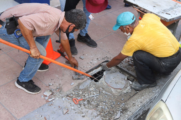 Reemplaza Ayuntamiento tapas de registros y luminarias en el Centro Histórico
