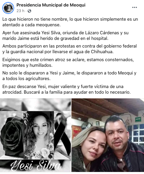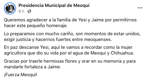 “Lo que hicieron no tiene nombre”, Presidencia de Meoqui condena homicidio de Yesi Silva