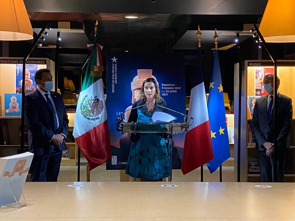 París, Francia, Comunicado (09/10/2020).- Luego de la contingencia sanitaria, que detuvo las actividades culturales de la capital francesa, esta tarde, el Museo del Quai Branly-Jacques Chirac reabrió con una muestra inédita para el público europeo: Los olmecas y las culturas del Golfo de México, la cual resume con más de 300 piezas cerca de tres mil años de historia. Se trata del primer proyecto expositivo internacional organizado por la Secretaría de Cultura del Gobierno de México, a través del Instituto Nacional de Antropología e Historia (INAH), en 2020.