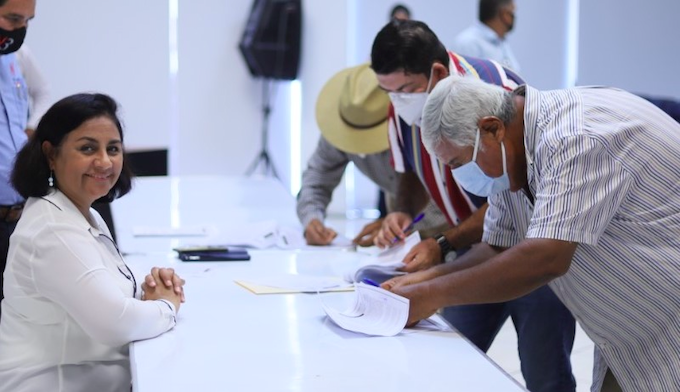Les cumple Griselda Martínez a Ejidatarios de Salagua, les entrega el primer pago de 20 millones de pesos