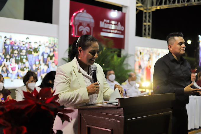 En la explanada del Pez Vela, declarada recinto de la sesión solemne de Cabildo número 45, la munícipe Griselda Martínez rendió cuentas a la población manzanillense sobre el estado que guarda la administración pública, dando cumplimiento a la Ley del Municipio Libre.