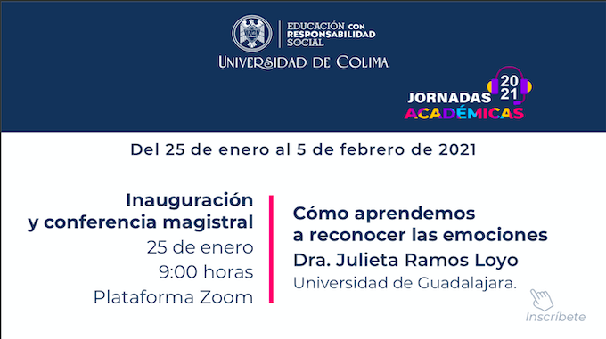 Las jornadas iniciarán con la conferencia “Cómo aprendemos a reconocer las emociones”, que impartirá la Dra. Dra. Julieta Ramos Loyo, académica de la Universidad de Guadalajara, a partir de las nueve de la mañana, por la plataforma Zoom.