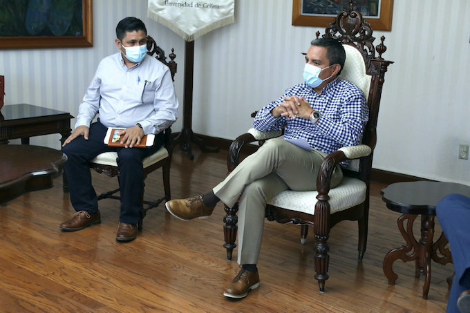 Colima, México, Comunicado (24/04/2021).- En su visita a la Universidad de Colima, el presidente del Comité de Participación Ciudadana (CPC) del Sistema Anticorrupción del Estado de Colima, Juan Carlos Alcántar Pérez, habló de lo que han hecho en el poco tiempo que llevan de constituidos y le planteó al rector Christian Jorge Torres Ortiz Zermeño la posibilidad de establecer un convenio de colaboración “que nos permita materializar los proyectos que hemos planeado, obviamente desde las posibilidades de la propia institución”.