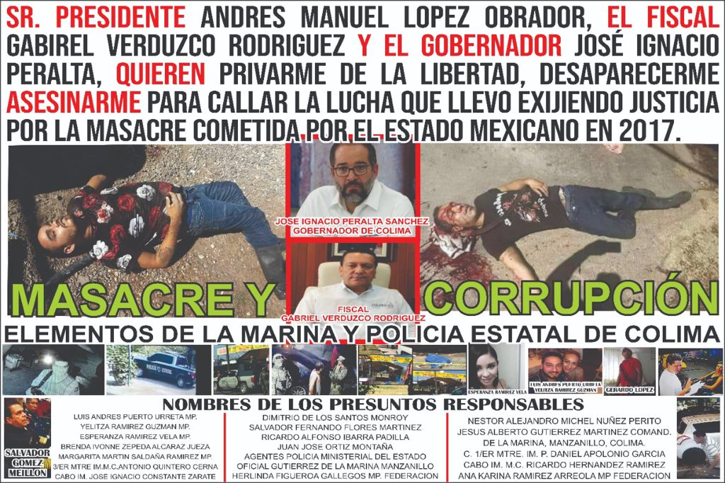 Colima, México, Avanzada (08/06/2021).- Los torturaron, robaron, extorsionaron y asesinaron, elementos de La Marina, Ministeriales y Policías Estatales estuvieron involucrados. Desde 2017 Nazario Garibay busca justicia para sus familiares.