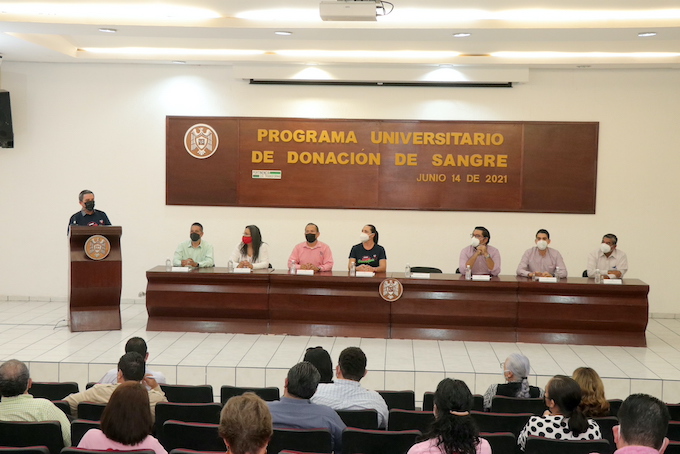 Colima, México, Comunicado (15/06/2021).- Este lunes, en el auditorio de Enfermería del campus central, la Universidad de Colima presentó el Programa Universitario de Donación de Sangre, que busca, en palabras de Blanca Liliana Díaz Vázquez, presidenta del Voluntariado Universitario, “incrementar la donación voluntaria de sangre en Colima y contribuir a salvar vidas. Para lograrlo, haremos alianzas con las instituciones de salud federales y estatales”. En este acto de presentación a la comunidad universitaria estuvo presente el rector, Christian Jorge Torres Ortiz Zermeño.