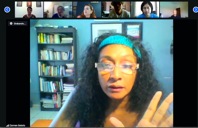 Colima, México, Comunicado (06/09/2021).- Con el propósito de promover el envejecimiento activo y mejorar la calidad de vida de los adultos mayores, la Universidad de Colima realizó el taller virtual de teatro “Viejos, los cerros”, impartido por la dramaturga y actriz Carmen Solorio a integrantes de la Asociación de Jubilados y Pensionados de esta casa de estudios.