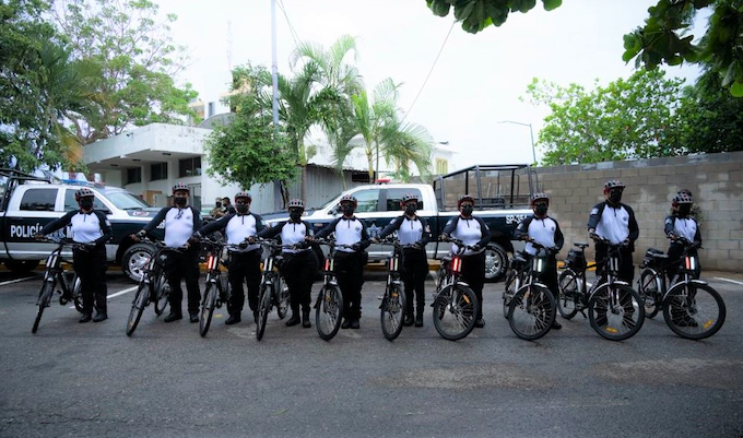 Entregó alcaldesa de Manzanillo bicicletas eléctricas y uniformes a policías de la Dirección de Seguridad Pública
