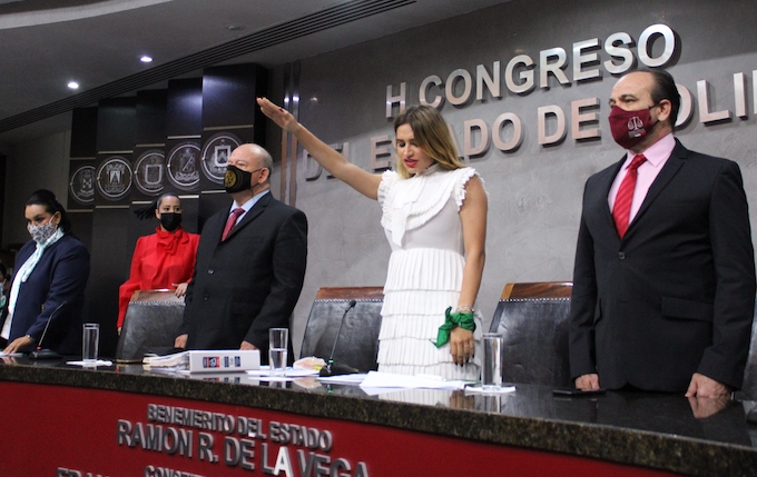 La presidenta de la Mesa Directiva, la diputada electa Viridiana Valencia Vargas, rindió la protesta de Ley como legisladora para posteriormente tomar la de las y los demás integrantes, de la formalmente instalada LX Legislatura. A este evento protocolario asistió como representante personal del gobernador el secretario General de Gobierno Rubén Pérez Anguiano y el titular del Poder Judicial Bernardo Alfredo Salazar Santana.