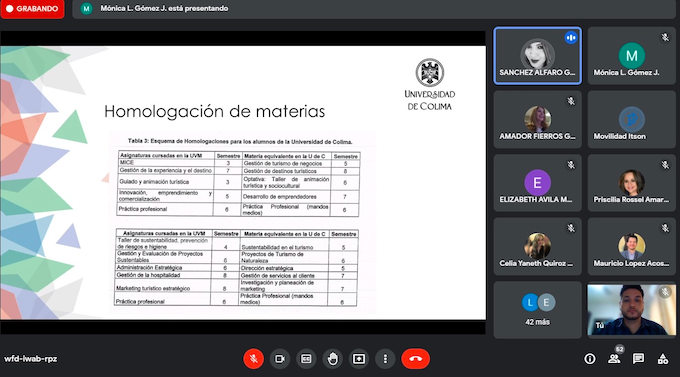 Colima, México, Comunicado (04/10/2021).- La Universidad de Colima impartió de forma virtual el taller “Programas de Doble Titulación”, en el Instituto Tecnológico de Sonora (ITSON). Las facilitadoras fueron la Dra. Genoveva Amador Fierros y Gabriela Sánchez Alfaro, de la Dirección General de Relaciones Internacionales y Cooperación Académica.