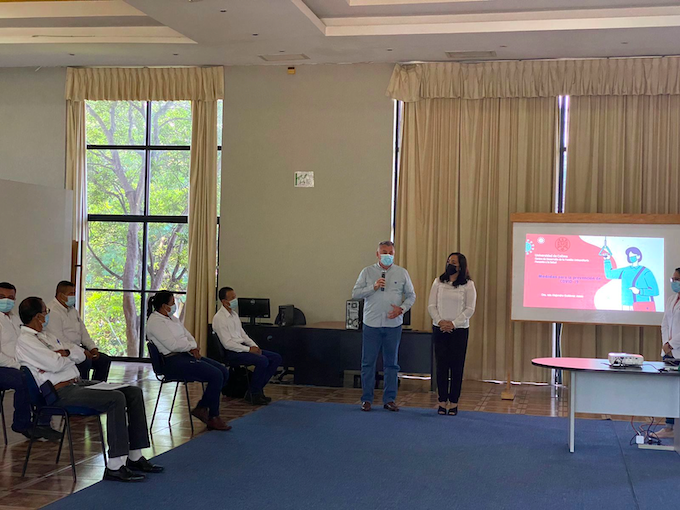 José Adalit González, jefe de Seguridad y Vigilancia en la Universidad, habló sobre la importancia de esta capacitación, del trabajo que realizan los supervisores para garantizar el retorno seguro, y los invitó a continuar con el compromiso en el cuidado de la comunidad universitaria.