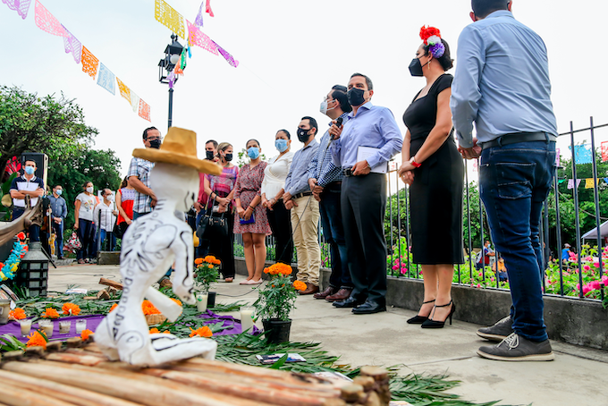 Las actividades del Festival de la celebración del Día de Muertos, “Voces de la memoria”, inició con un recorrido por dos altares, el primero dedicado a doña María de Jesús Reynaga Fermín, y el segundo a los difuntos de la comunidad. Este último fue elaborado por Guillermo Bricio, director del MUAP, junto con los pobladores. Dicho altar hace referencia a las culturas prehispánicas y al mismo tiempo celebra la identidad de la comunidad.