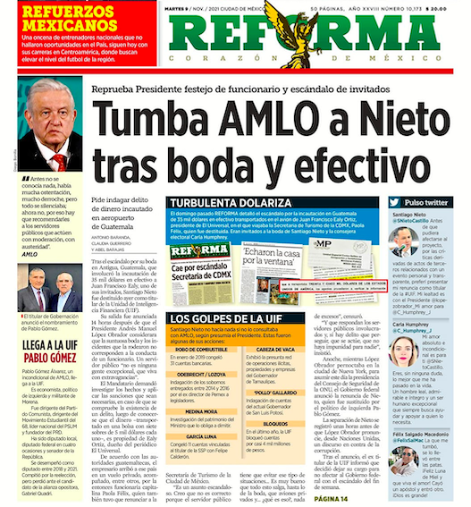 El sábado, un avión privado llevaba a bordo a destacadas empresarios de los medios, enemigos francos y groseros del presidente. Los tripulantes de la nave llevaban 7 sobres blancos con 5 mil dólares cada uno. No huelga decir que los empresarios mexicanos transportan dinero en efectivo a El Salvador y Guatemala para realizar transferencias internacionales a terceros países, con finalidad de no dejar rastro en México. Este proceder de Francisco Ealy Ortiz, tiene la firma del lavado de dinero. Y Santiago Nieto lo sabe.