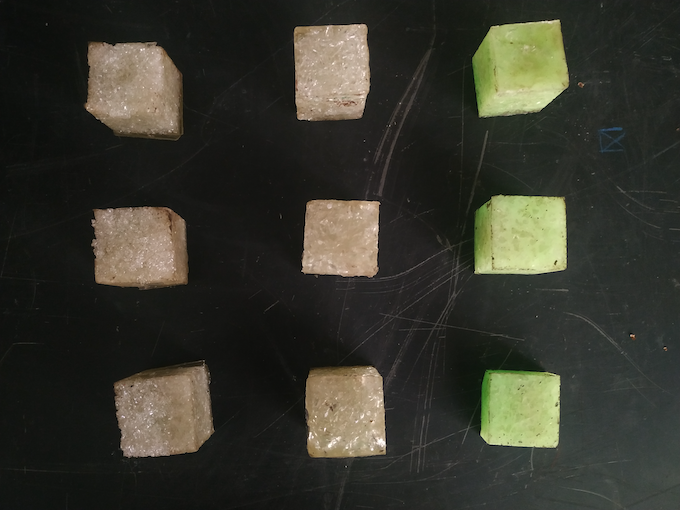 “Buscamos una alternativa que se desempeñe de manera similar al concreto convencional, compuesto por cemento, grava, arena y agua. Hicimos pruebas con distintos tipos de resinas y evaluamos los puntos negativos y positivos. El núcleo de nuestro concreto es la resina, que puede llevar otro material; en este caso decidimos que fuera el vidrio (que sustituye a la grava y la arena) porque es más fácil de conseguir y porque es un material que se puede utilizar infinitas veces; pero además, cuando éste se tritura en partículas pequeñas, es más resistente que cuando está en ventanales o vasos”, explicó en entrevista.