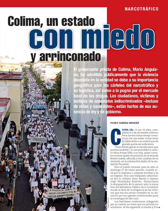 *Fotografía de un reportaje publicado hace diez años en la revista Proceso, por el periodista Pedro Zamora Briceño. En él se documentó que hace diez años también salieron los colimenses a exigir garantías de seguridad al gobierno de Colima.