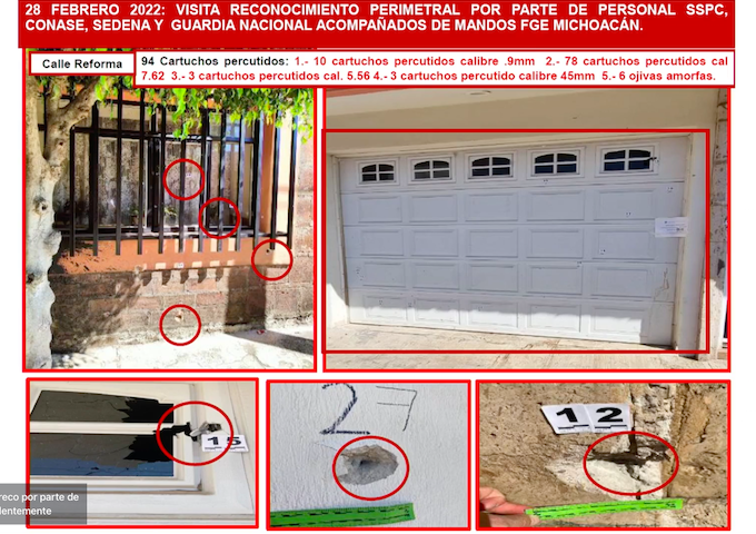 Señaló que después de las 18 horas del domingo 27 se detectó en las redes sociales un video en el que se observa la agresión con armas de fuego en las afueras de un domicilio en San José de Gracia, que se tomó como una noticia criminal, por lo que se inició la carpeta de investigación y se dispuso el traslado de personal al lugar de los hechos, que se localiza a 45 minutos en vehículo de la sede regional en Jiquilpan.
