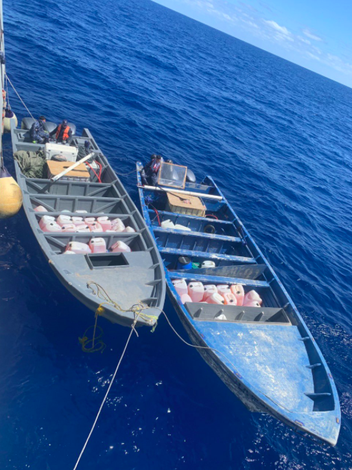 Esta acción se realizó cuando personal de ese Mando Naval y de la Fuerza Naval del Pacífico, a bordo de la Patrulla Oceánica de Largo Alcance (POLA) y de una aeronave de esta Institución, detectaron dos embarcaciones menores con tres motores fuera de borda, transportando bidones de combustible y tres tripulantes en cada una, quienes aparentemente no efectuaban actividades de pesca, lo que causó sospecha de realizar una presunta actividad ilegal.