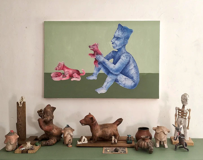 Mientras que “Amuletos”, de Ángel Cadena, integra una serie de obras plásticas a fin de rendir tributo y hacer visible, de manera contemporánea, piezas de la cerámica prehispánica colimense que forman parte de nuestro legado e identidad cultural.