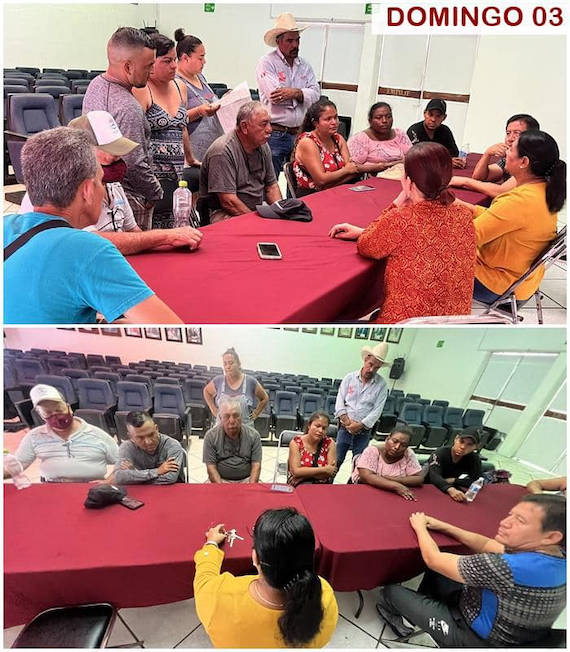Para comunicarle a la gente desalojada en Campos los avances del diálogo con representantes de la empresa, el domingo 03 de julio, la alcaldesa se reunió nuevamente con la comisión de las familias afectadas. Les informó que sí hay voluntad para lograr acuerdos y la posibilidad de que las familias desalojadas obtengan un predio del que sí puedan tener una certeza jurídica, por lo que se acordó que el pasado lunes 04 de Julio recibiría a todos los afectados para presentarles alternativas de solución.