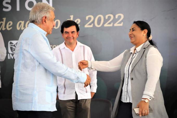 Griselda Martínez gestiona obra pública para Manzanillo frente al presidente