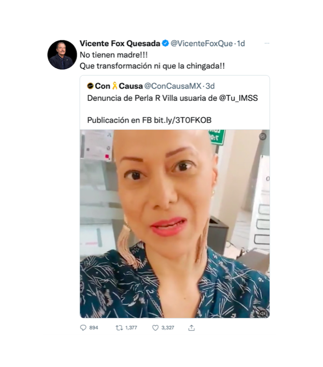 *El expresidente de la república Vicente Fox Quesada conoció el caso y mostró su indignación en su red social de Twitter.