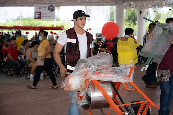 En el uso de la voz, María del Carmen Castro beneficiaria del programa agradeció a nombre de las y los presentes el apoyo recibido, “este proyecto, nos hace la vida feliz, tenemos muchos años con la idea de crecer, pero es difícil porque no podemos juntar el dinero para hacerlo. Ya empezamos a trabajar desde que nos entregaron el equipo, hacemos galletas e incrementaremos nuestros productos”.