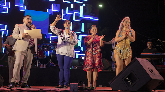 Fue la presidenta Griselda Martínez, quien después de bailar al compás de la cumbia y arriba del escenario, entregó un reconocimiento a la agrupación por su participación en la Feria de Manzanillo 2023, “excelente presentación de este grupo que trae mujeres hermosas; allá abajo me preguntaban que este festejo parecía para los papás y que a ver si no se nos enojaban las mamás, y yo le dije -en Manzanillo no somos celosas, nada, somos mujeres muy valiosas y seguras, así es que no somos celosas”.