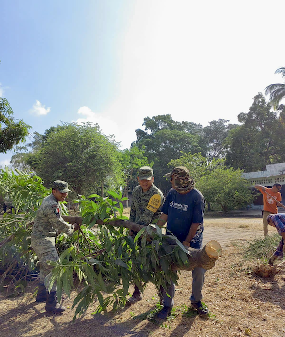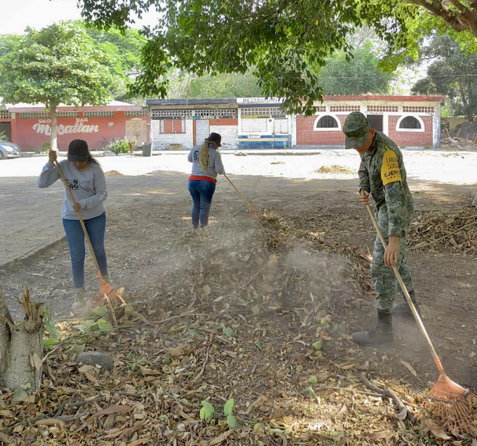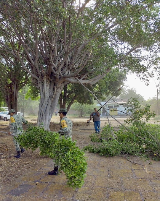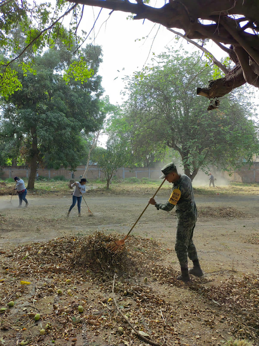 Soldados de la SEDENA barren y cortan ramas en la ciudad más violenta del mundo, Colima