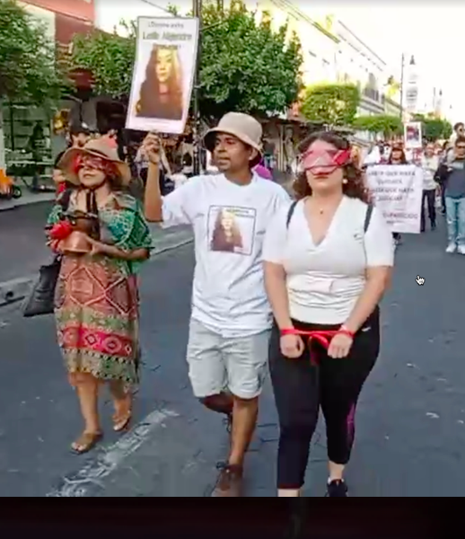 Mientras caminaban nombraron algunas víctimas de desaparición: “Alejandro Flores Larios, ¡No presente!, Alfredo Rivera Castellanos, ¡No presente!, Alfredo Pedraza Galván, ¡No presente!, Alma estrella Nuñez Michel, ¡No presente!, Alondra Alcantar, ¡No presente!, Alvaro Guardado Silva, ¡No presente! Ambrosio Gutierrez cruz, ¡No presente!, Antonio Jimenez Ruiz, ¡No presente! Armando Rangel Hidalgo, ¡No presente! Arnulfo Verduzco Moreno, ¡No presente!, Arturo Fidel González Sánchez, ¡No presente!, Donaldo Sepúlveda Gómez, ¡No presente!”.