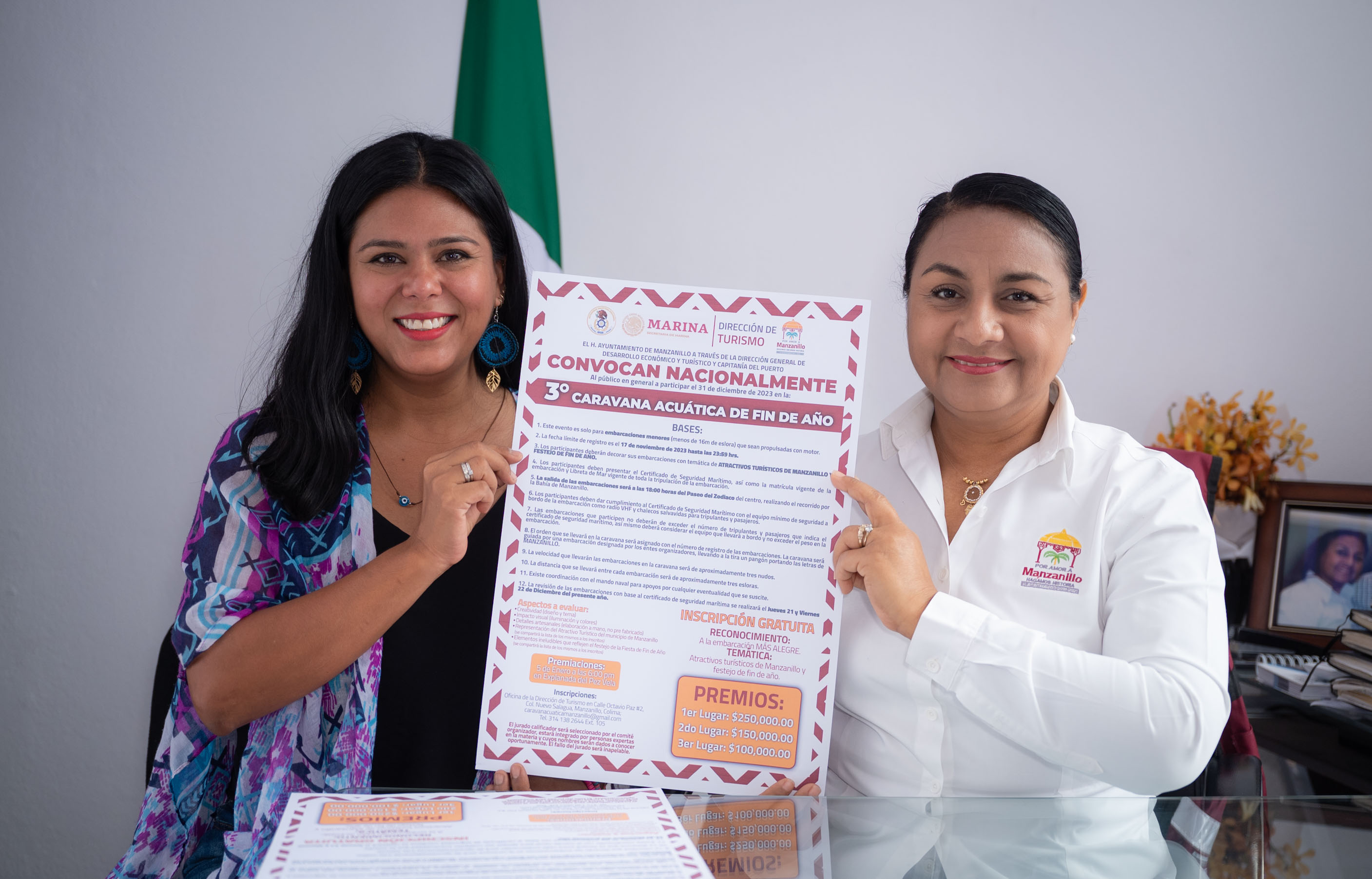 Manzanillo, México, Comunicado (06/07/2023).- Por tercer año consecutivo y con una bolsa de premios de 500 mil pesos, la presidenta de Manzanillo, anunció la apertura de la convocatoria nacional para la realización de la Caravana Acuática de fin de año, en la cual podrán participar todas las embarcaciones menores y deberán adecuarse bajo la temática: atractivos turísticos de Manzanillo y festejo de fin de año.