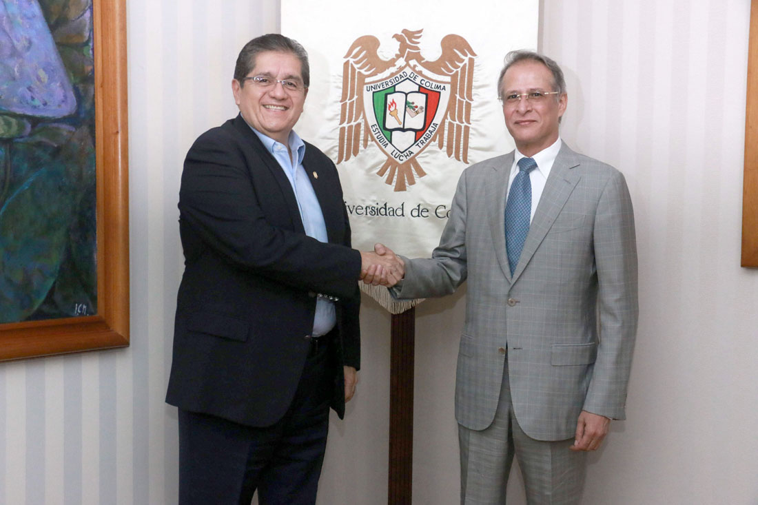 Colima, México, Comunicado (12/04/2019).- Con el propósito de fortalecer e incrementar los lazos de cooperación entre Kuwait y la Universidad de Colima, este jueves el rector José Eduardo Hernández Nava recibió la visita del embajador plenipotenciario de ese país, Muteb Saleh Almutoteh.