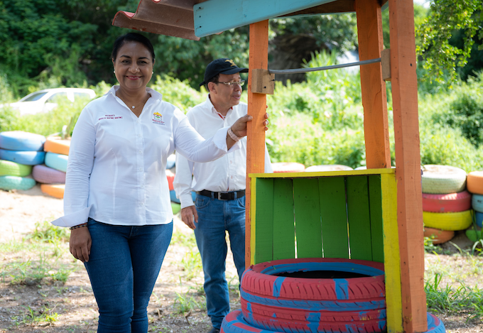 Desde ese lugar y acompañada por el director general de Participación y Desarrollo Comunitario, Luis Valdivia, la alcaldesa mencionó que este sitio que se acondiciona se ubica hasta el fondo de la última calle de esa colonia, y que es un parque al que se le da constante mantenimiento, “ahora intervenimos una parte de este parque y quedó muy bonito, y prácticamente no nos costó nada, más que todo el trabajo de las y los compañeros de la dirección de Participación y Desarrollo Comunitario”.