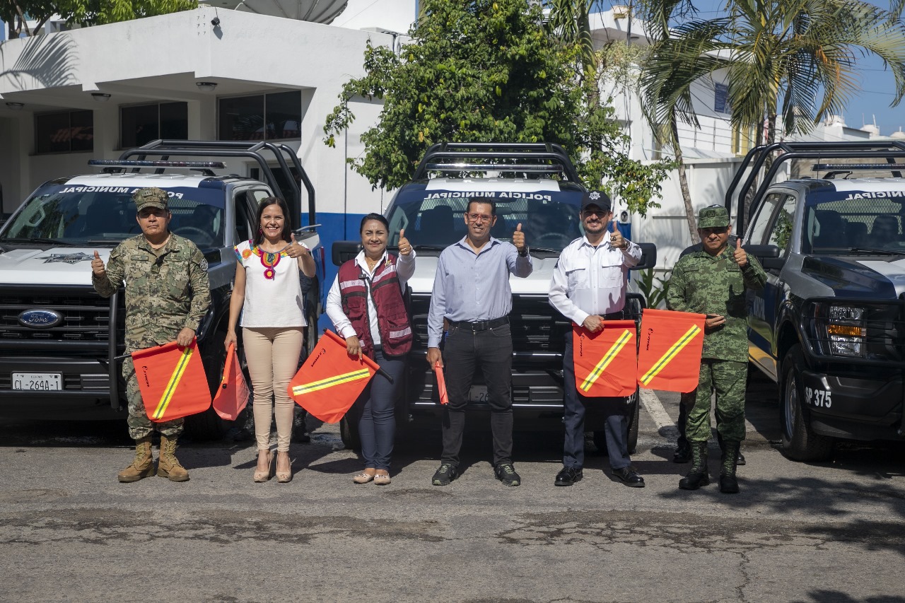 El recuento de los 5 años, se compraron 52 unidades tipo pickup, 2 unidades tipo vagoneta, 3 vehículos tipo sedán, 18 motocicletas, 10 bicicletas eléctricas, 2 vehículos todo terreno, 1 grúa de plataforma, 1 grúa de canastilla y 1 unidad tipo panel para el traslado del personal; asimismo se adquirió equipo de seguridad como uniformes y accesorios para los elementos de Seguridad Pública y Policía Vial (pantalón, camisa, playera tipo polo, gorra, cascos balísticos, chalecos balísticos y googles).