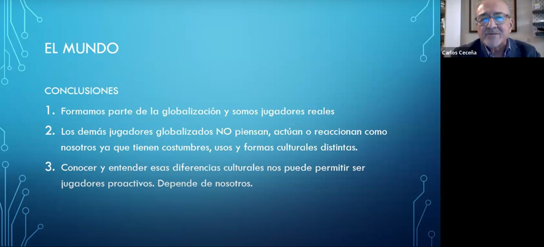 *Carlos Ceceña les habló a las y los jóvenes de los bachilleratos participantes en el programa Adopta una prepa, sobre “El mundo: un reto, mil oportunidades”, como parte de las charlas virtuales de la Red Global MX, Capítulo España.