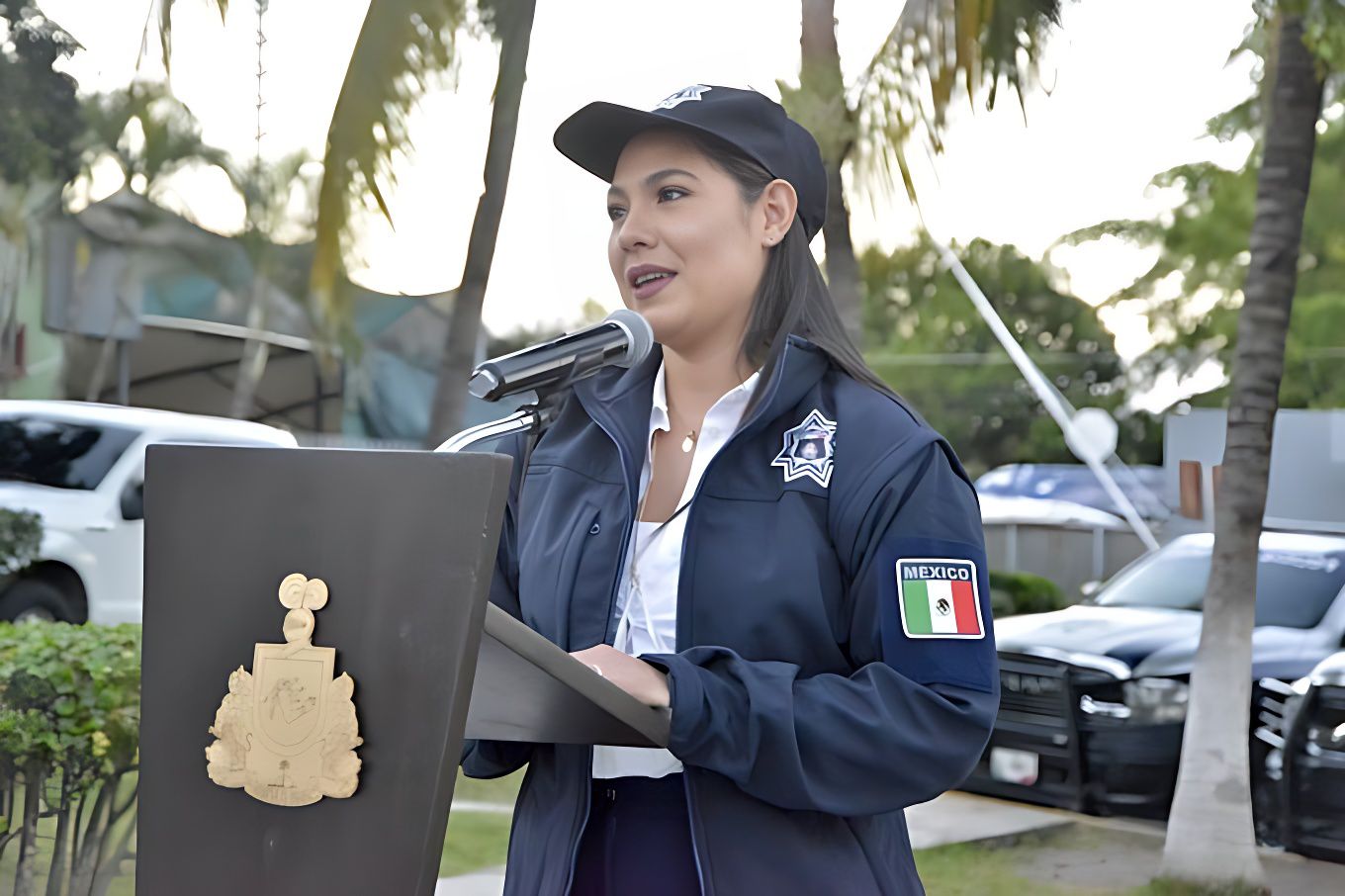 *En la fotografía: la gobernadora del Estado de Colima, Indira Vizcaíno Silva, entregando a las corporaciones de seguridad patrullas rentadas.