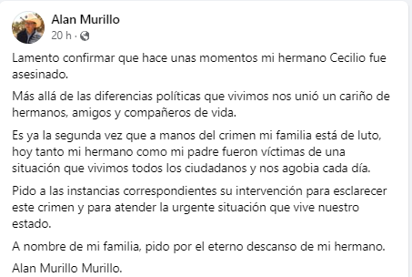 El alcalde de Sombrerete, Alan Murillo Murillo, consternado por la pérdida, expresó su dolor a través de redes sociales, confirmando la trágica noticia y solicitando la intervención de las autoridades para esclarecer este crimen. Este luctuoso evento marca la segunda ocasión en que la familia Murillo se ve afectada por la violencia del crimen organizado, sumándose a la urgente llamada de atención sobre la situación que vive el estado.