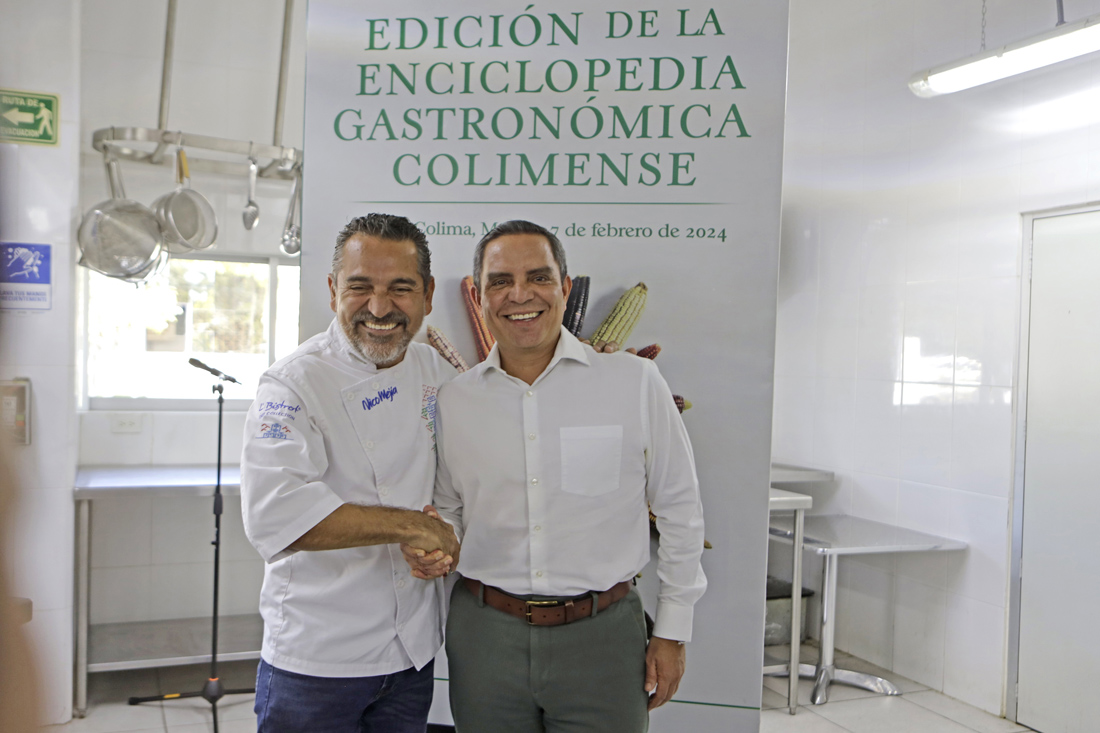 Colima, México, Comunicado (08/02/2024).- La tarde de este martes, el rector de la Universidad de Colima (UdeC), Christian Jorge Torres Ortiz Zermeño y el chef Nico Mejía, firmaron el contrato de coedición digital del primer tomo de la “Enciclopedia Gastronómica Colimense”. La firma se realizó en el laboratorio de alimentos y bebidas de la Facultad de Turismo de esta casa de estudios, ubicada en el campus Villa de Álvarez.