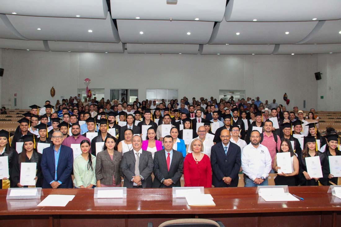 Colima, México, Comunicado (27/02/2024).- La Facultad de Ciencias Biológicas y Agropecuarias (FCBA) de la Universidad de Colima (UdeC), llevó a cabo la entrega de certificados a 57 egresados de la generación 2019-2024 del programa educativo de Ingeniero Agrónomo, en un emotivo evento celebrado en el auditorio del Centro de Tecnología Educativa del campus Tecomán.