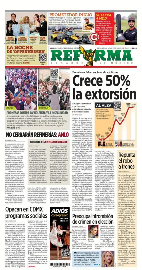 Colima, México, Avanzada (12/03/2024).- En medio de la creciente ola de extorsiones que afecta a diversos estados de México, Colima se encuentra entre las entidades más afectadas, según el último informe publicado por el periódico Reforma en su nota principal, firmada por el reportero Benito Jiménez.