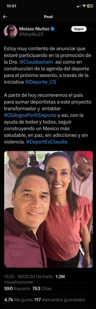 Muñoz expresó su entusiasmo por participar en la promoción de la Dra. Claudia Sheinbaum y en la construcción de una agenda deportiva para el próximo sexenio a través de la iniciativa “@Deporte_CS”. Su mensaje, que buscaba sumar deportistas al proyecto transformador, desencadenó diversas reacciones entre los cibernautas.