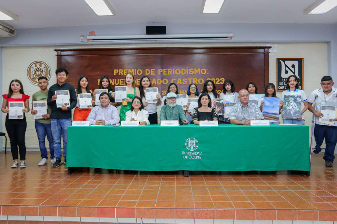 Colima, México, Comunicado (21/03/2024).- Este miércoles entregaron los premios de primer lugar y menciones honoríficas a las y los ganadores del Premio de Periodismo Manuel Delgado Castro 2023, organizado por la Facultad de Letras y Comunicación (Falcom) y el Seminario Permanente de Periodismo.