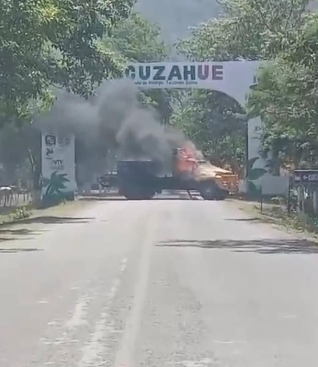 Plagian persona en Tecomán, queman camiones, desatan balaceras, llegan hasta Coahuayana y arrojan granadas