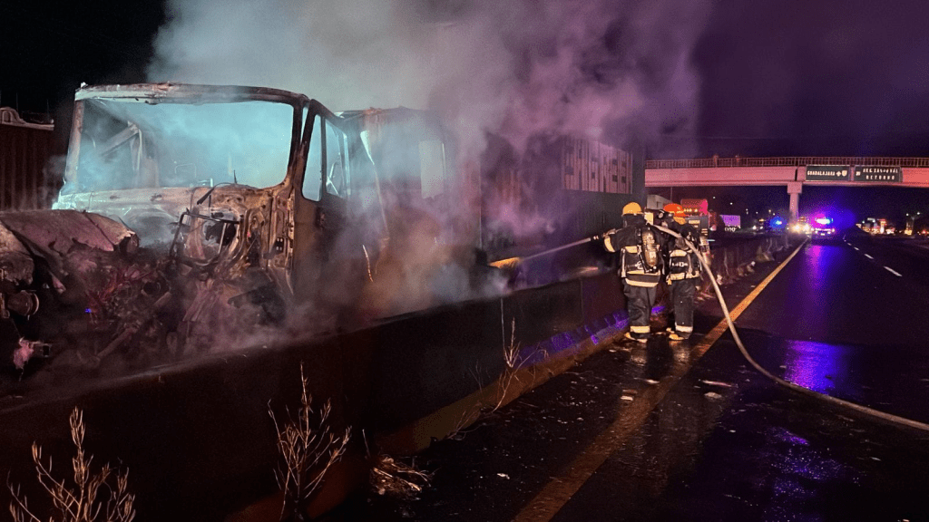 Colima, México, Avanzada (18/04/2024).- La madrugada de este jueves 18 de abril, se reportó a través del sistema de emergencias 911 un accidente sobre el Libramiento Ejército Mexicano, cercano al puente peatonal en dirección de Colima a Manzanillo, posterior a la colisión se incendió la cabina de un tractocamión que obstruyó la circulación en ambos sentidos.
