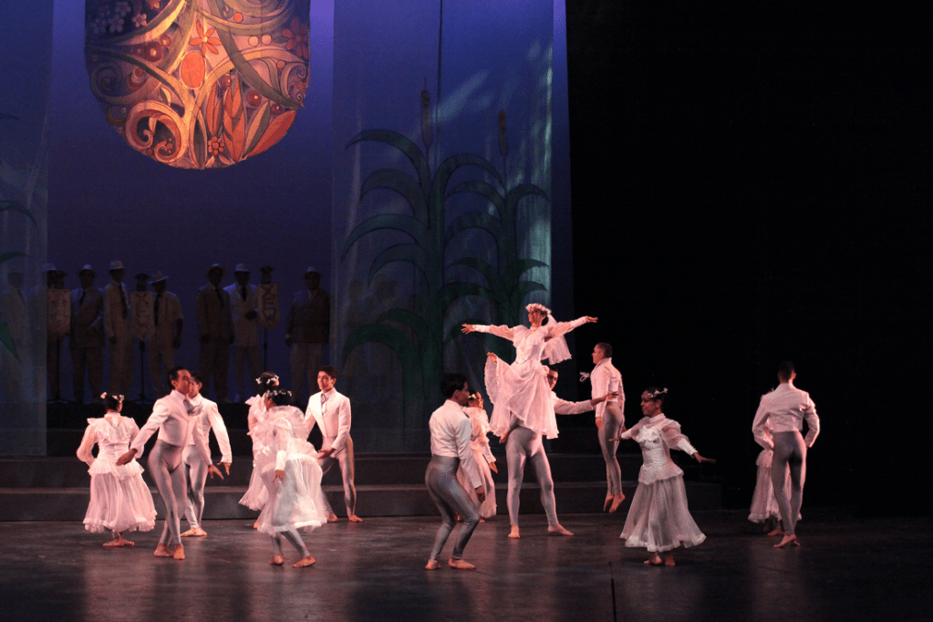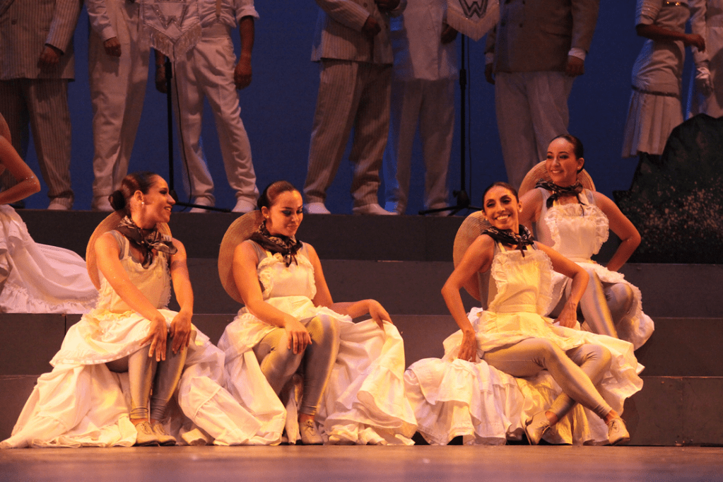 En una primera parte, el público espectador disfrutó de la coreografía de la época prehispánica “Juegos de magia y muerte”, así como un repertorio nacional que incluyó las coreografías de la “Fiesta del acabo”, inspiradas en las personas que sembraban maíz en el municipio de Coquimatlán.