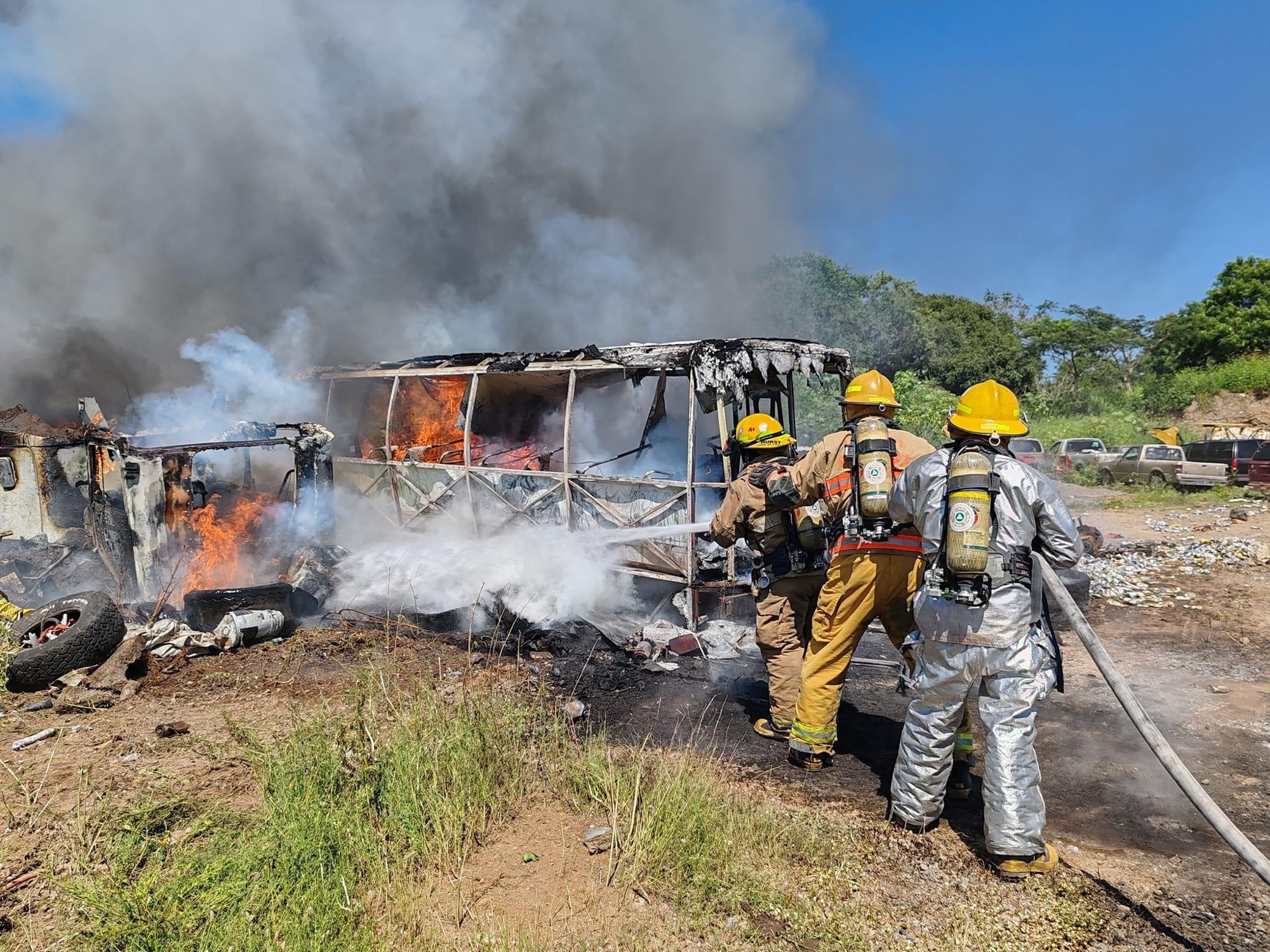 Protección Civil de Cuauhtémoc sofoca incendio de autos en carretera